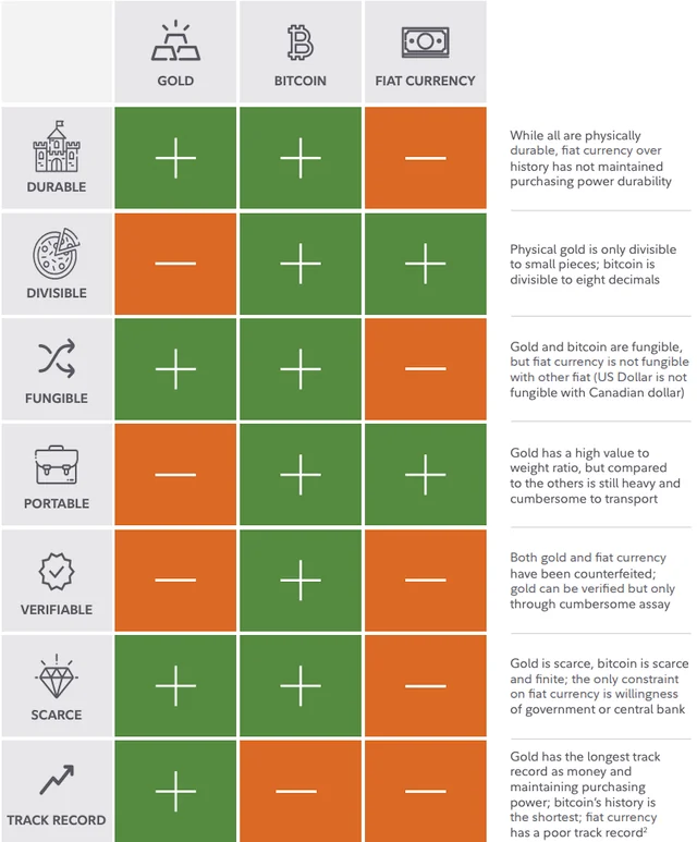 >>61202467>they talk about physical durability at the top row...all are considered physically durable (because of electronic bank transfers for fiat). fiat is docked points for purchasing power durability. should prob be a separate category but whatever.>gold is pretty divisible too.... thats how it was used to 5,000 yearssilver coins and others were typically used for smaller transactions.