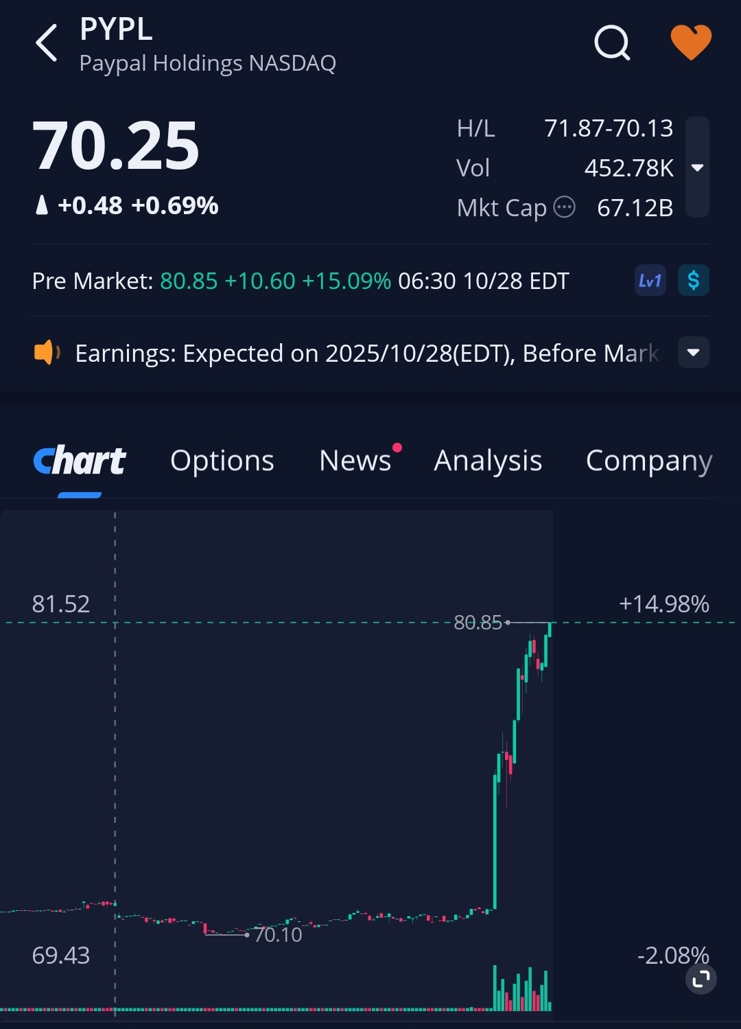 >OpenAI deal>implementing a dividend >2.1b free cash flow for the quarter >8% revenue growth, beat>20% EPS bestPayPal literally reported all of this in the past hour and is struggling to hold 10% gains LOL why can't I give up on this cursed stock.