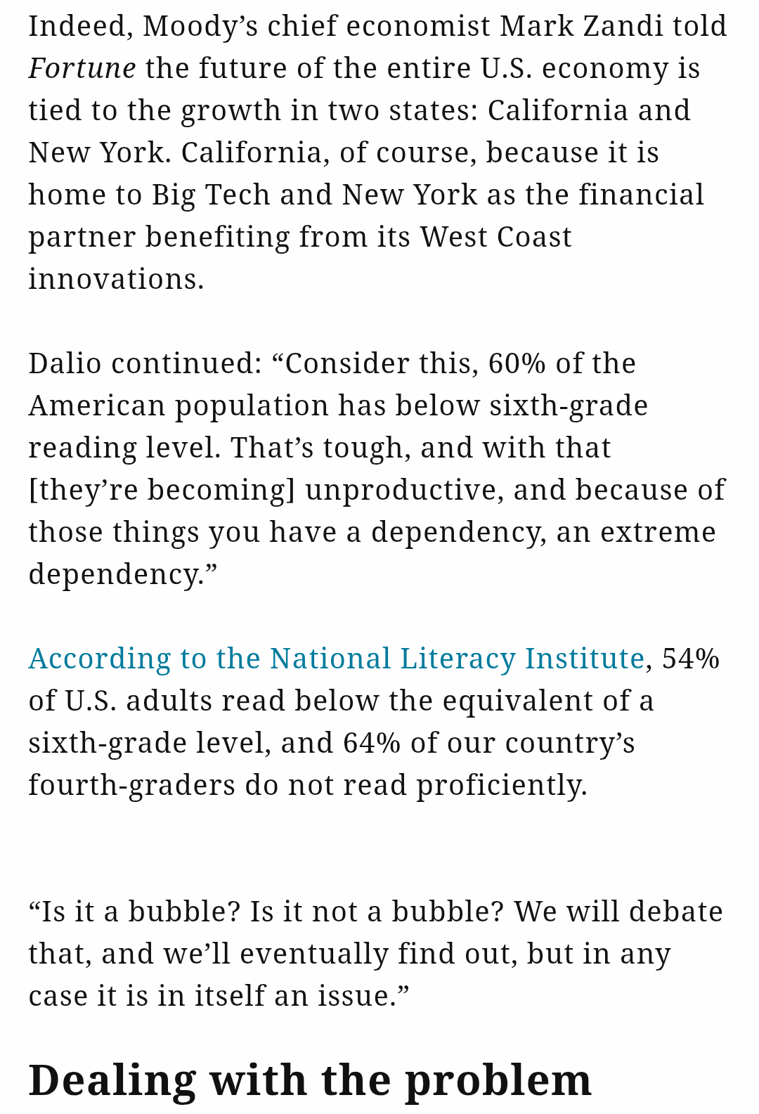 He means reading level not income