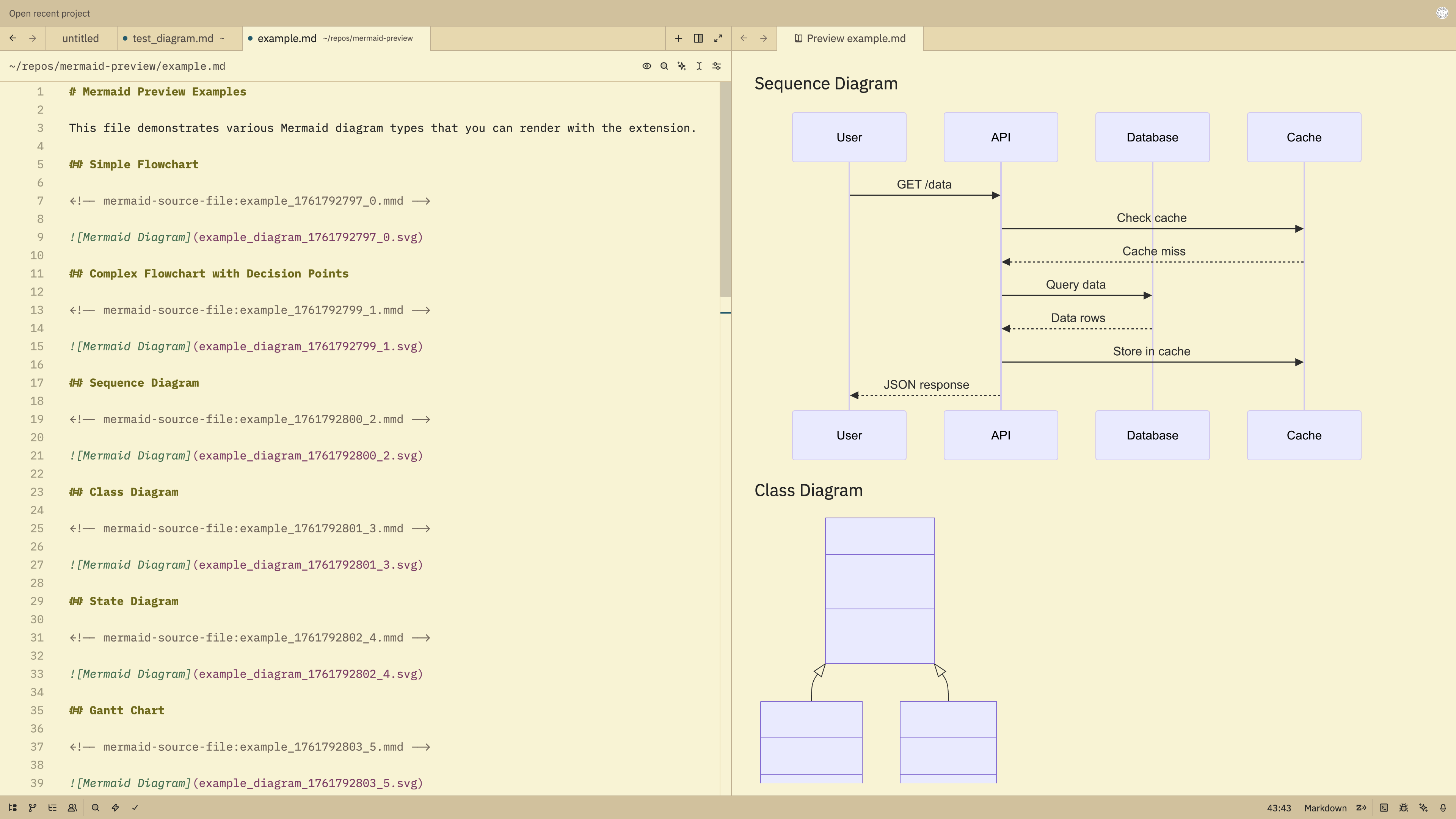 >>61228836>They're generated from Mermaid code blocks, but rendered on the fly in the separate pane, yeahThats sick