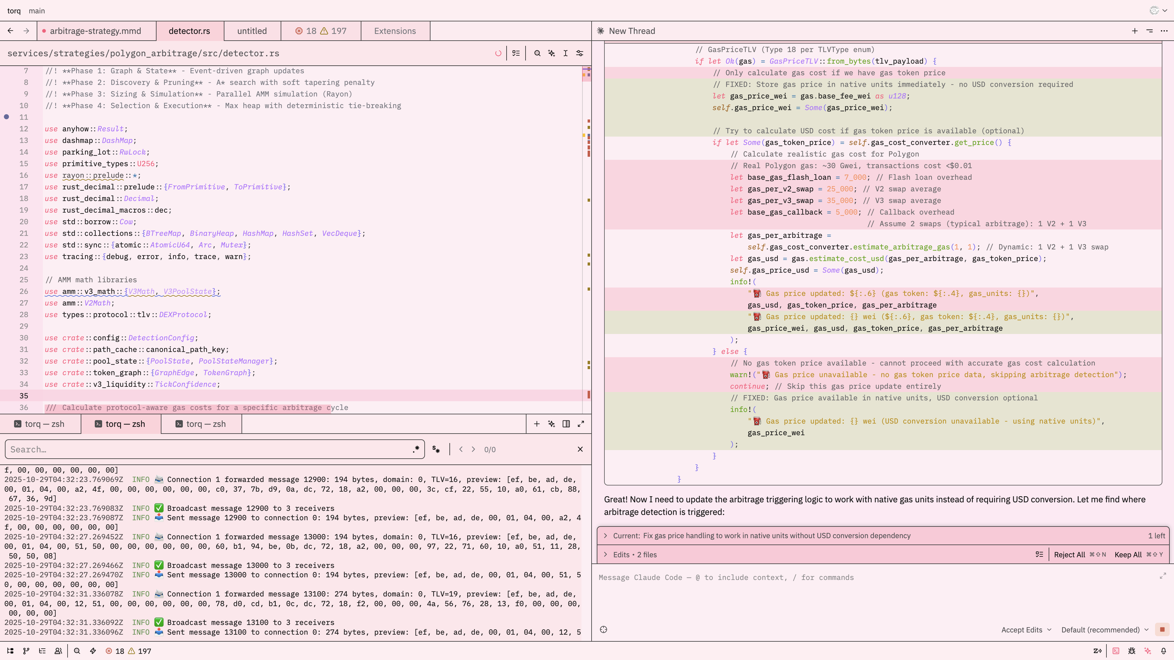 >halloween eve upd8For want of better a documentation workflow (eg, AI assisted mermaid diagrams rendered inline), I've been taking a detour to set up Zed, for a minimal config and GPU-native experience over Emacs. I thought it could render Mermaid diagrams out of the box (that's what ChatGPT said), but I had to write a custom extension. >zed vs emacsEmacs can render Mermaid how I want, but everything is just a lot more janky. Since Zed is GPU native, it just kinda fit what I wanted more, and honestly, for the most part, everything "just werks". It's nice not having any config overhead, it's written in Rust so it came with the LSP pre-installed for it, AI integration is first class, etc. I think I'm gonna stick with it, even if it means leaving org-mode (trying to write an LSP that uses a headless emacs to get basic org features working cheaply). It has some other quirks but it's a young project and open source so I feel good about the switch. >documentation / rustdocsI find high quality docs / formal spec pays for itself, especially with LLMs, since I need to feed it context so often, and I really wanted a good workflow for LLM assisted diagram generation and viewing so it wasn't such a maintenance burden. Rust documentation in particular is a killer feature, since you can import/export sections of documentation (and diagrams) to code files, so in theory that should help keep consistency between documented design and implemented code, with minimal documentation surface area.The key with the documentation this time around will be to keep it as dynamically generated as is reasonable, and integrated into the code (eg, structs and schemas should exactly match what's documented, and either the test suite or a linter should pull from docs to confirm and catch any specification drift). So the rustdoc imports will be clutch to lower the maintenance burden. Bit of a detour but I think it's worth it.