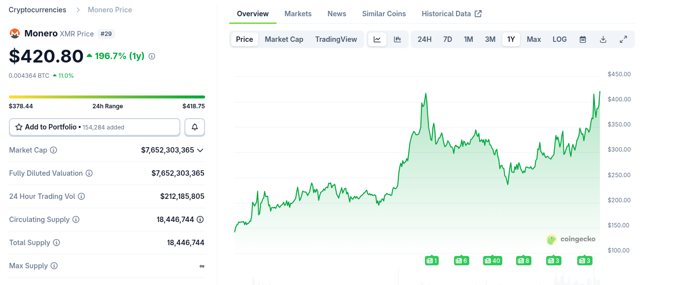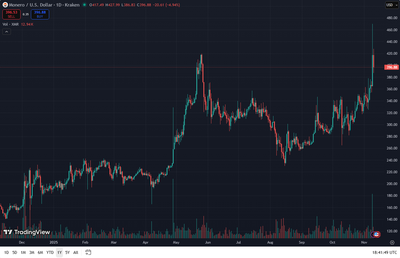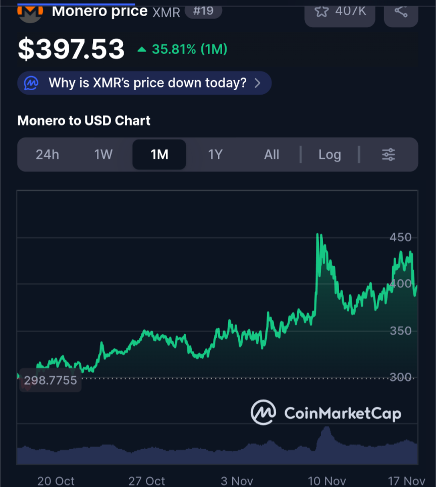 If the price falls below $400 in the next 12 hours I'm going to say that people are only using XMR as some kind of tax free exit strategy only and not holding.