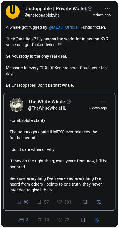 This isn’t really FUD just a practical question that I don’t see a way around Let’s say you have a decent stack of Monero. Let’s say it moons. $10k XMR everyone is celebrating. Like most people who become wealthy in crypto, you’ll probably want to quit your job and enjoy your new station in life.Unfortunately, Monero provides literally zero yield or cash flow from holding it and still isn’t accepted by 99.999% of locations worldwide, including things you need to live like rent, food, and hotels if you want to enjoy your newfound freedom. Sorry I don’t live near those 20 supermarkets in Switzerland that take it!!!What do you do at that point? Maybe you decide to sell a portion of your bag, stick it in a bank account or boomerinvestment account and get your hopefully 10% return and live off that. You’ll be taxed, that will cut into your stackHOPEFULLY you’re in a jurisdiction where it’s even legal to own XMR. Maybe there won’t be many of those left by the time it’s $10k…….Even if you successfully get it into a traditional bank account —-WAIT—- the year is 2027 and AI is even crazier. The bank tells you after 15 different angry customer service calls “We actually ran a scan of your past activity and it turns out that deposit you made with us last year came from a BTC/XMR atomic swap service and we’re not allowed to touch any assets that have ever interacted with XMR. Therefore your account is permanently frozen and we can’t allow you to transfer it”Literally even if you make it in XMR it will become a nuclear asset to hold, and AI will be able to find out that you have a connection to it and permaban you from the economy.