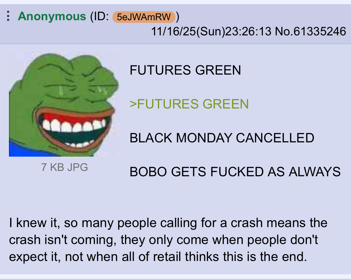>>61337303>When Japan stops buying, interest rates don’t stay flat. They explode. US 10-year yields will jump 40 basis points minimum from flow dynamics alone. Your 7% mortgage becomes 8%. Corporate debt refinancing costs spike 60%. Zombie companies holding $3 trillion in junk bonds start defaulting in waves.>The yen carry trade just reversed. $1.2 trillion in borrowed yen funding crypto, stocks, emerging markets must unwind. Every hedge fund, every momentum trade, every leveraged bet built on free Japanese money is getting margin called simultaneously.>This breaks in three places:>Stock valuations were built for 2% bond yields forever. At 3.5% yields, the S&P 500 fair value drops 35%. Emerging market currencies collapse without Japanese capital inflows. Europe’s debt crisis returns because Italy and Spain lose their silent buyer.>December 18th the Bank of Japan meets. 50% chance they hike again. If they do, sell everything not nailed down.>Your 401k doesn’t price this in yet. The Fed can’t stop this. No central bank can. >The world’s biggest piggy bank just cracked open and the money is flowing backwards.