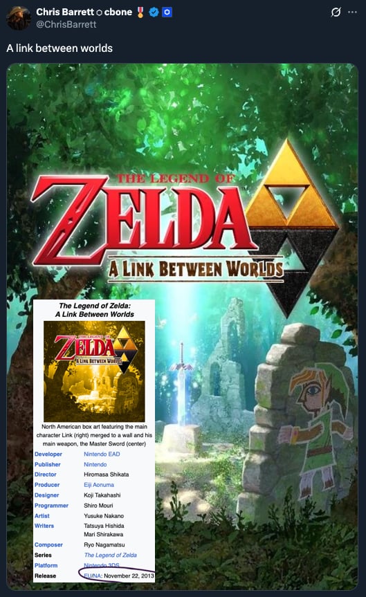 >Zelda Oracle of Seasons release 14 May>Chainlink mainnet 14 May