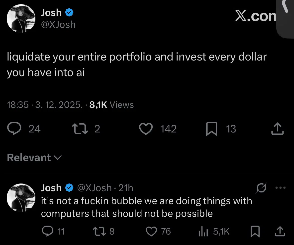 >>61438723Shades of that anon who blew all his brother's money on HGRAF after selling all his MAG7 stocks.