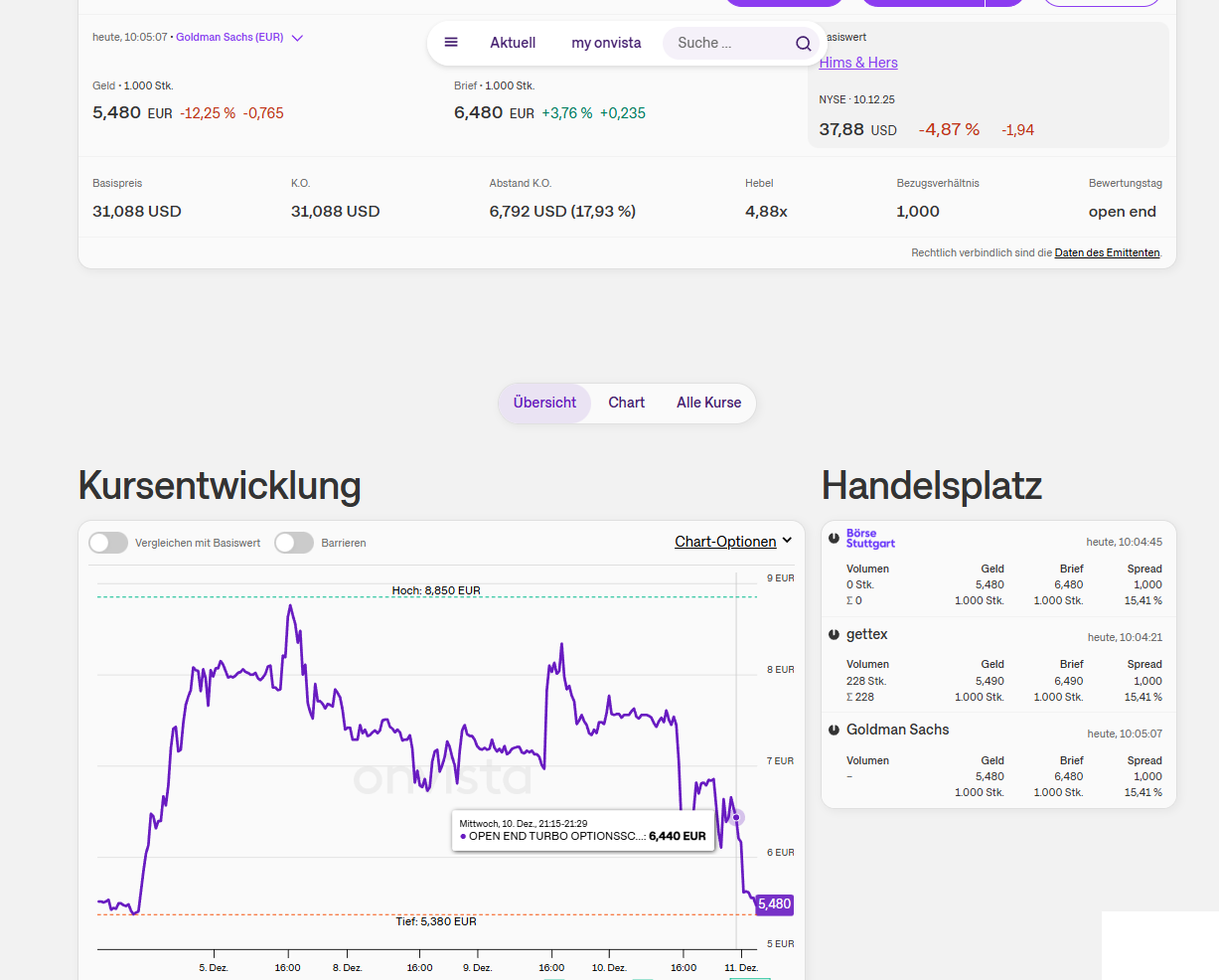 Derivative purchased with 1% spread and immediately down 15% with the price remaining unchanged. WTF!?ISIN: DE000GU73Z84I just purchased the following derivative. The spread is stated as 1%. After the purchase, I was immediately down 15% with the price remaining unchanged. What the hell happened?