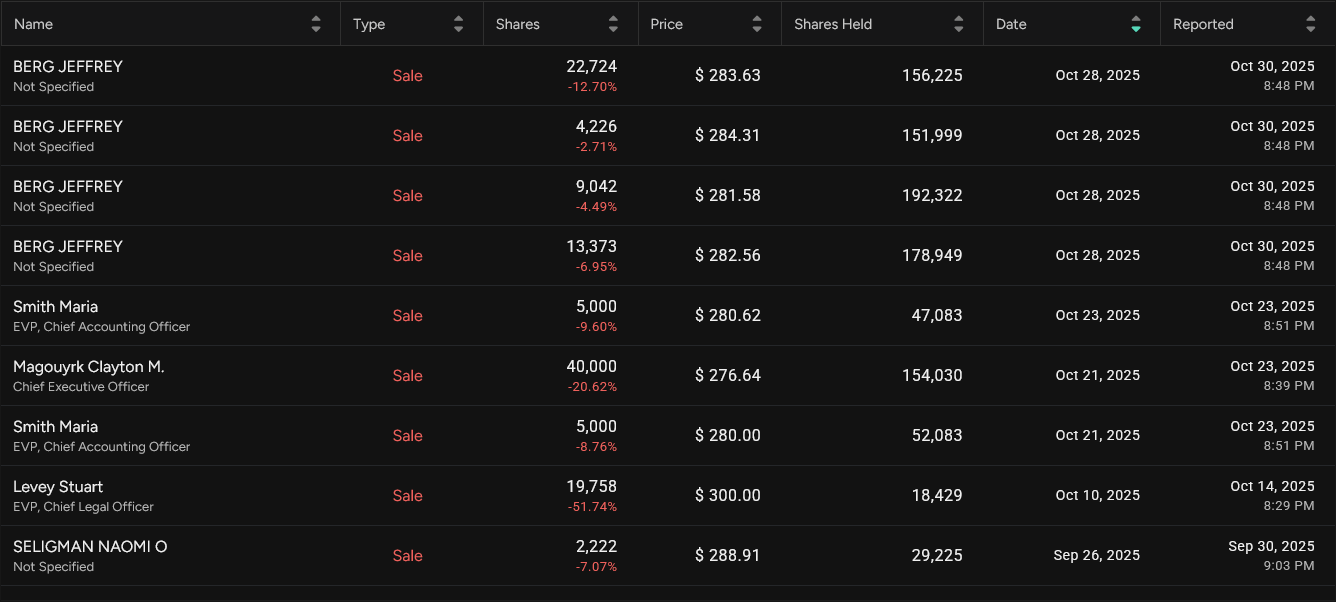 >>61472961Jeffrey Berg who has a large amount of shares sold 25% of them but the data is not up to date so you'll have to wait until it is updated to see if there's any more recent sales