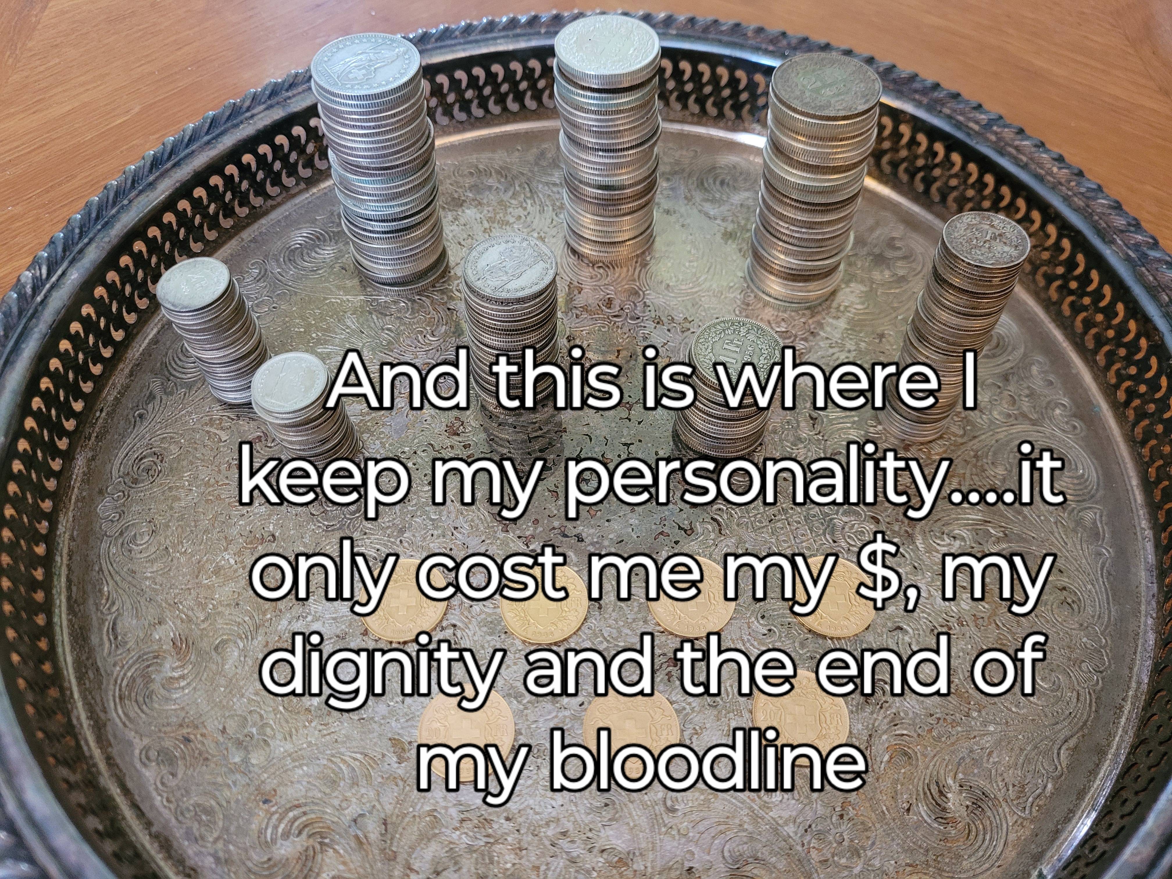 >>61472495I pay for everything cash. The only coins I hang on to are nickels and pre-82 pennies.I think they complement my silver and gold quite nicely.