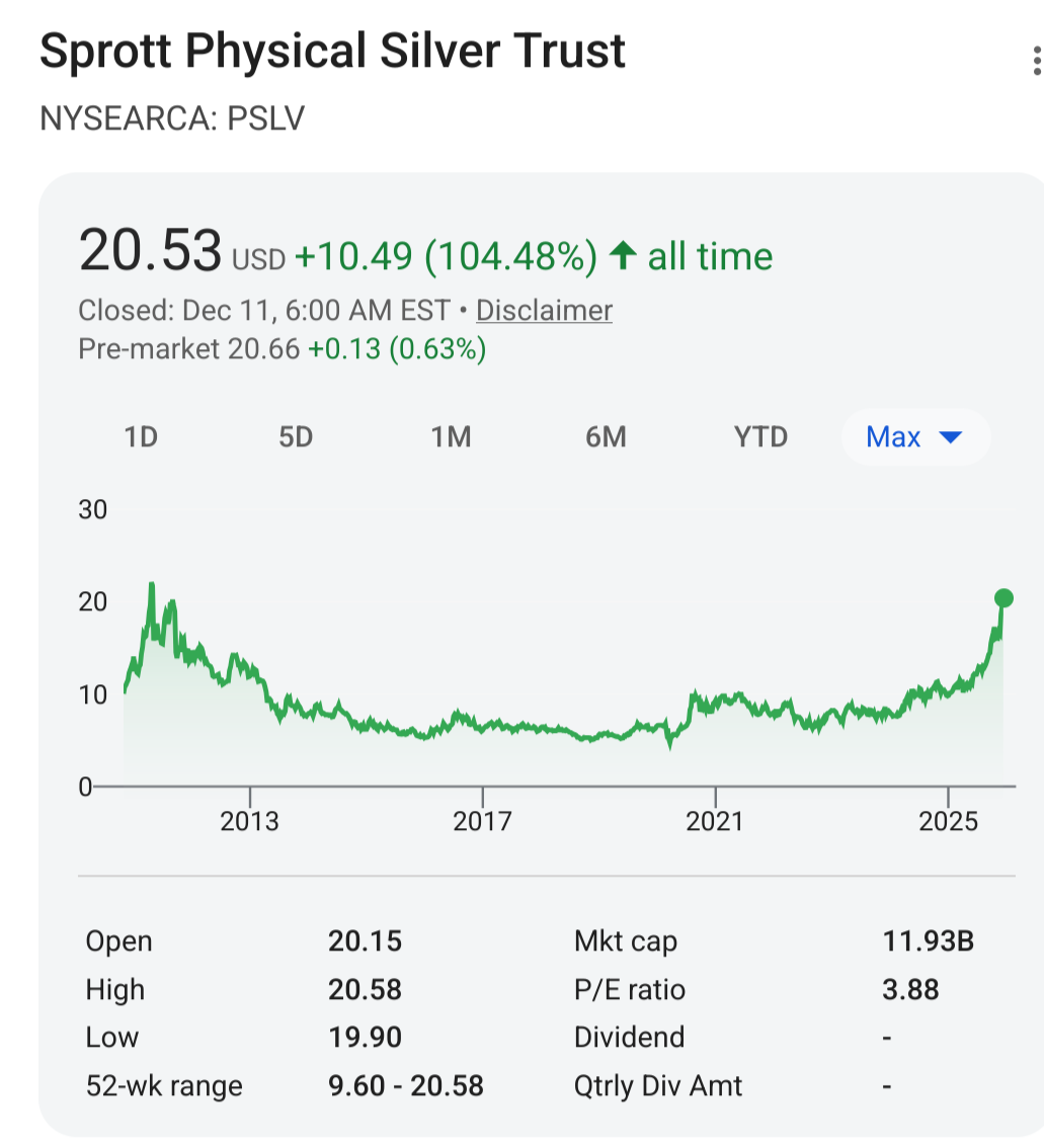 >>61474424>>61474443I bought a 20k position in SLV back in 2022 when I had no idea of its fraud. I haven’t rotated out because it’s in a big gains position and I’m gunna take a tax hit. The rest of my accumulation when I learned how fake it was has been physical.