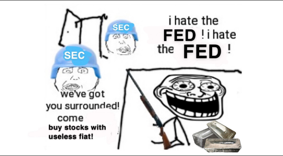 >>61474464Taxes? Where we're going we don't need taxes.When its time to sell, there won't be any taxes. In a hyperinflationary environment you can sell in January and by the time you pay taxes a year later you will owe only a pittance in fiat. This ends with remonitization of PMs.