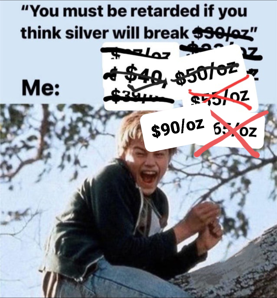Watching silver moon is surreal frens, I wish I'd stacked more dirt cheapies back when it was easy but have been diversifying with January 2027 and 2028 mining stock call options since the summer instead, so far so good but Shlomo will probably rug me before I decide to start banking delicious gains and force me back into stacking grandma's cheap sterling. I really wouldn't be surprised if the great rug prophesied by based schizos comes to pass but goddamn do i want that fat pile of paper gains to spend so I can keep HODLing all my silver forever.