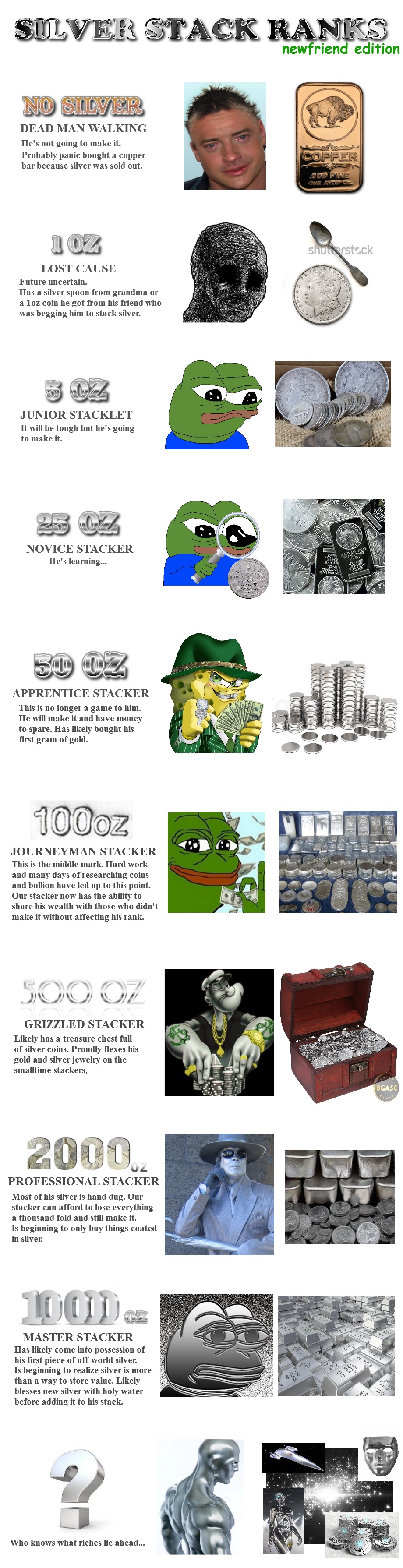 >>61474142It fucking hurts, doesn't it? We had so good when a $200 order to avoid shipping was 7-9 ounces. Everyone is in the terrible position of stacking at the cost of averaging up. I believe in the bull thesis, but we all know how silver gets slapped down and can crab for six million years.>>61474156I doubt we'll ever see a crash in silver again like we did in 2020 when silver tickled $12 per ounce. I think the moves are being made and the people sense the danger in 2025 in ways that didn't really matter like they did in 2008 and 2020. Lots of military positioning is going on in the world and we all know it happens for economic reasons. Sometimes trade negotiations happen at the end of a canon. Much like Commodore Perry shaking down the East. You're going to trade with us whether you like it or not.