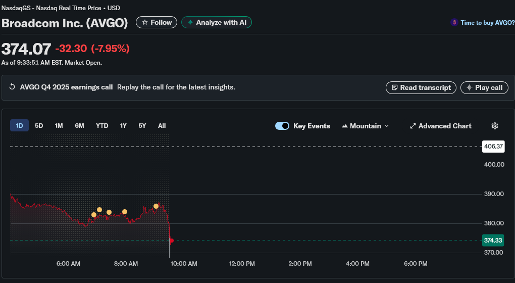 Broadcom projected $73 billion over the next six quarters of which Anthropic alone is $21 billion of those sales over the next four quarters which means their sales are relatively flat and not the type of growth investors had expected which means the stock is overvalued hence the dump