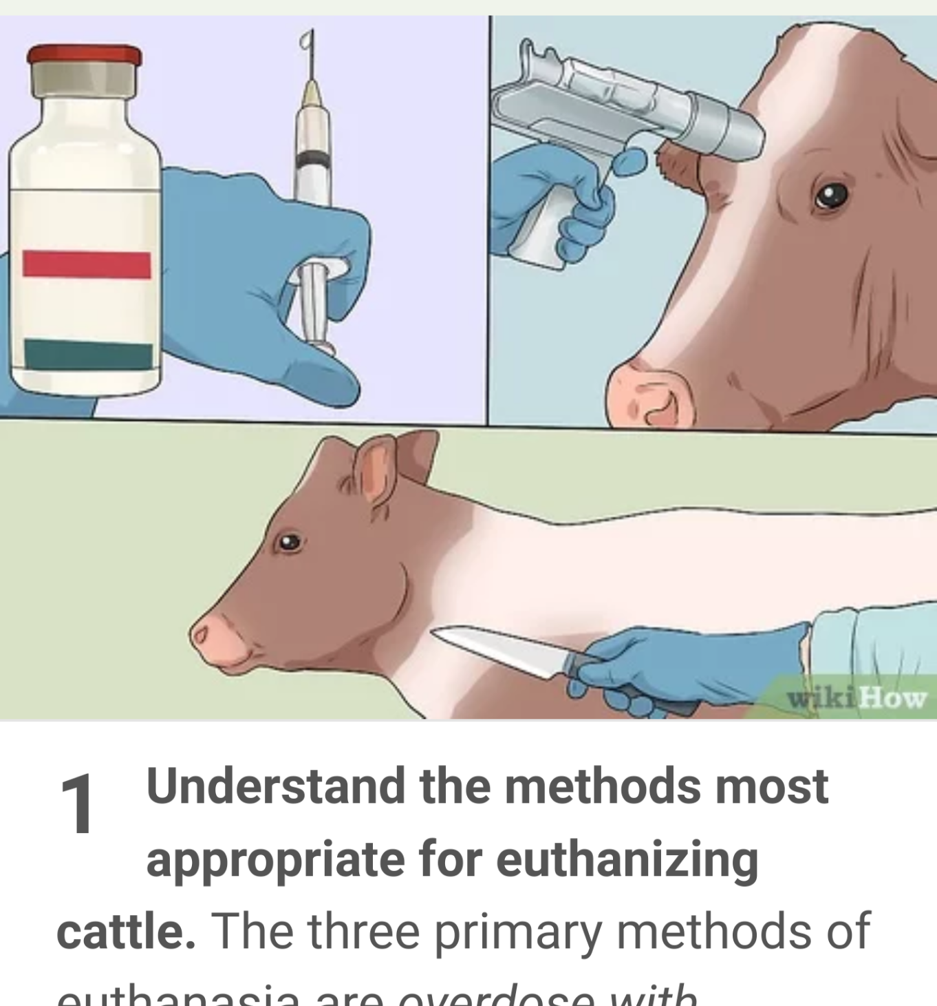 >The methods most appropriate for euthanizing cattleCaptive bolt is the only really humane method, and it's by far also the most efficient. Why are there even other methods discussed?