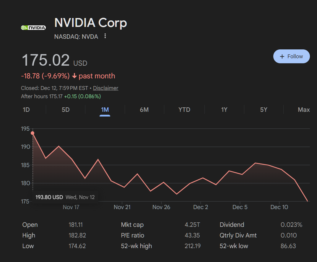 >>61482655>beginning the blowoff phaseAnon, I have bad news for you.We're past the blow off top. For nvda, 185 may have been the top of the dead cat bounce.