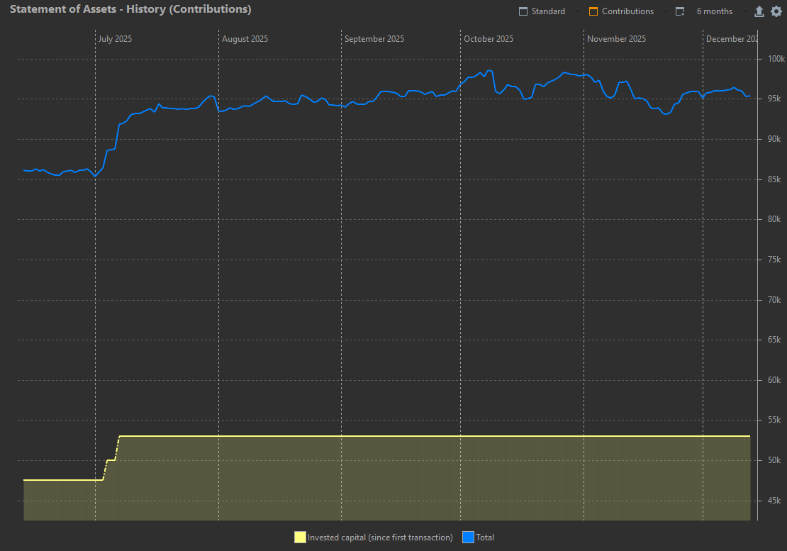 >>61482098Friday: -0.67%Week: -0.65%I will be getting my end of year bonus next week so I'll cross into 6-figures but it will be through contributions. Sad.