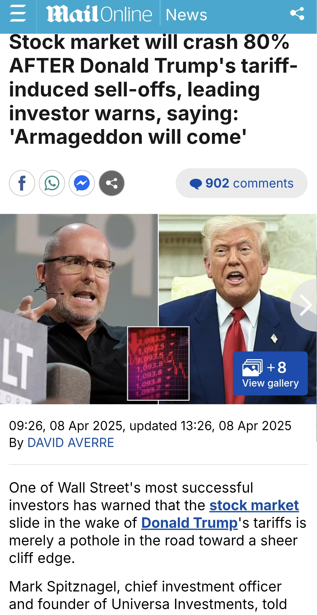 Is it true boys? Can we really pick up some mega cheapies in a couple of months?Mark Spitznagel, chief investment officer and founder of Universa Investments, told MarketWatch he expected an '80% crash' was lurking around the corner.'I expect an 80% crash when this is over. I just don't think this is it. This is a trap,' he said, adding that when the real crash happens, investors will know it.Spitznagel's fund was one of the big winners during the extreme volatility that rocked markets in the early days of the pandemic in 2020, returning a whopping 4,144% in Q1 of the Covid-affected year.'This is another selloff to shake people out. This isn't Armageddon. That time will come as the bubble bursts,' he said in comments to MarketWatch.
