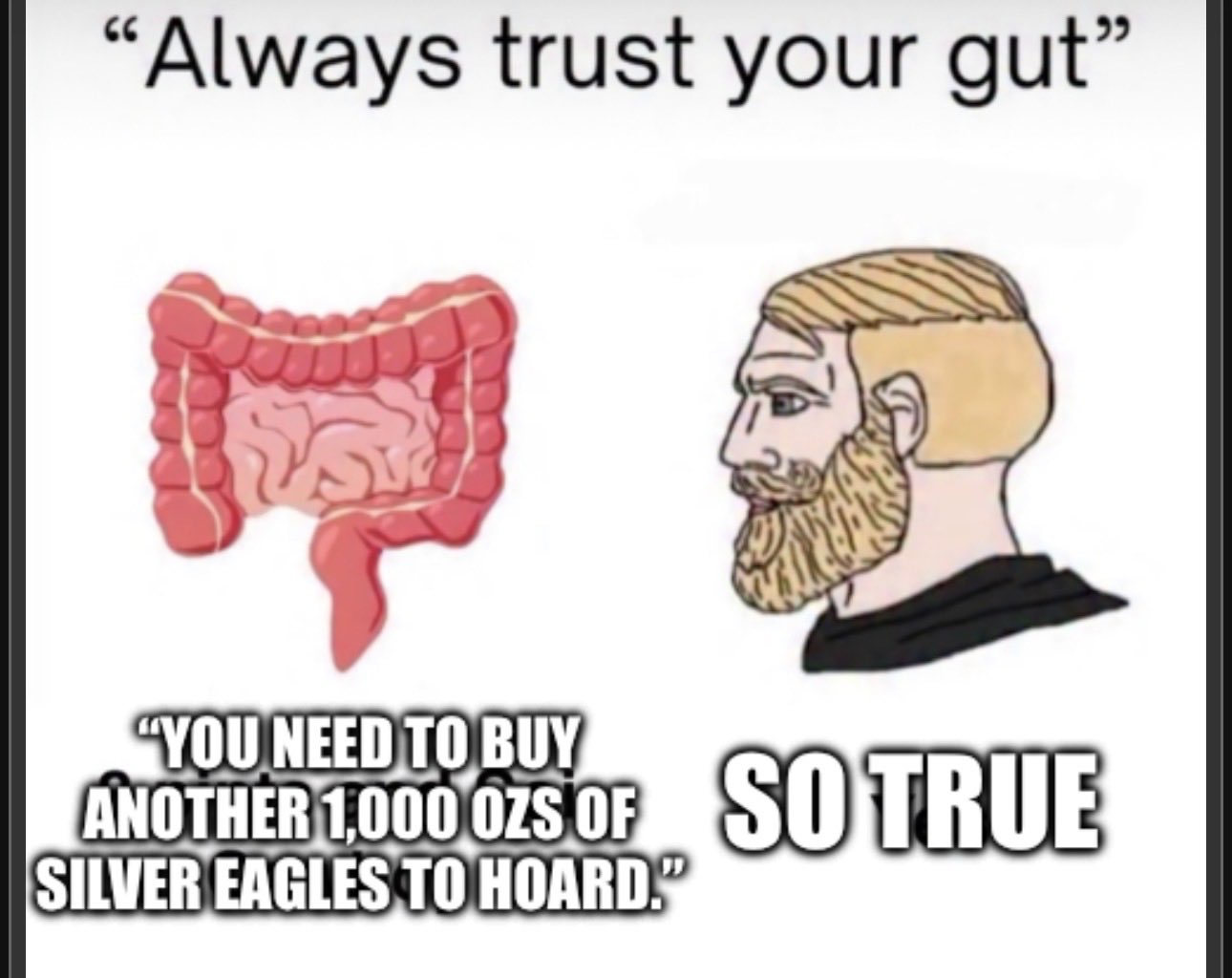 >>61483481I think you need, in order:- 100oz junk- 100oz .999- 1oz goldAnd after that just stack what you can get your hands on