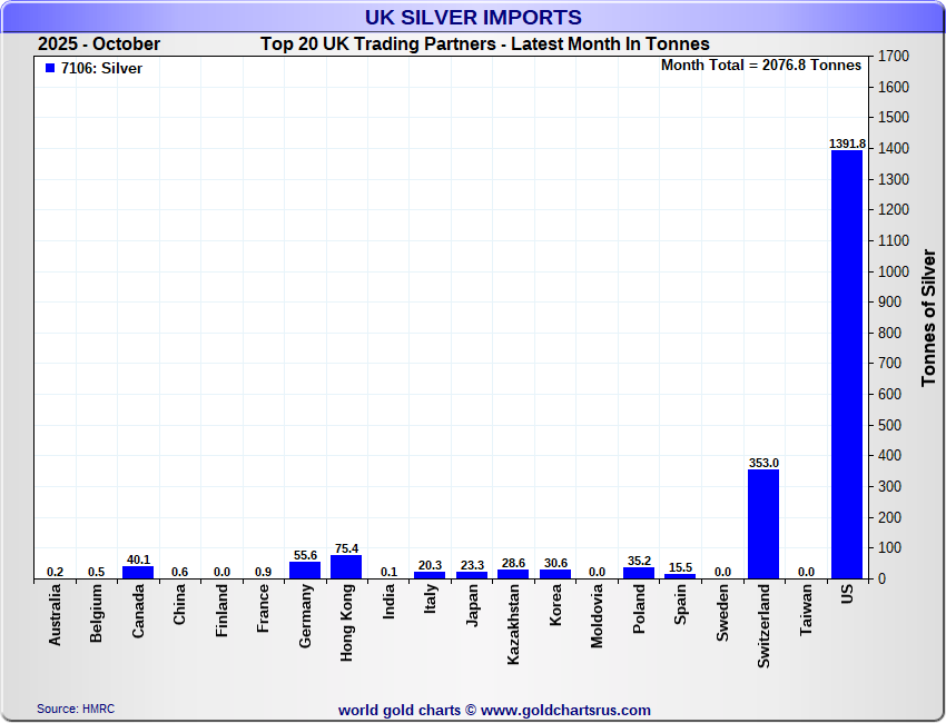 For those who remember the October silver shortage, it turns out the LBMA silver leased from China nearly all went to India. LBMA is still on the hook to repay that silver to China.>All the Chinese physical #Silver that was leased by the LBMA in October was dropped shipped straight to India, bypassing London.>“INDIA RECEIVED 644.4 tonnes of physical #Silver via HK & China in October!”>Thanks @GoldFishCharts for the info!https://x.com/KingKong9888/status/1999737477096177714>China's silver flows for October>662 tonnes exported.>UK received 0.6 tonnes>India received 644.4 tonnes via HK & Chinahttps://x.com/GoldFishCharts/status/1999729350074339533