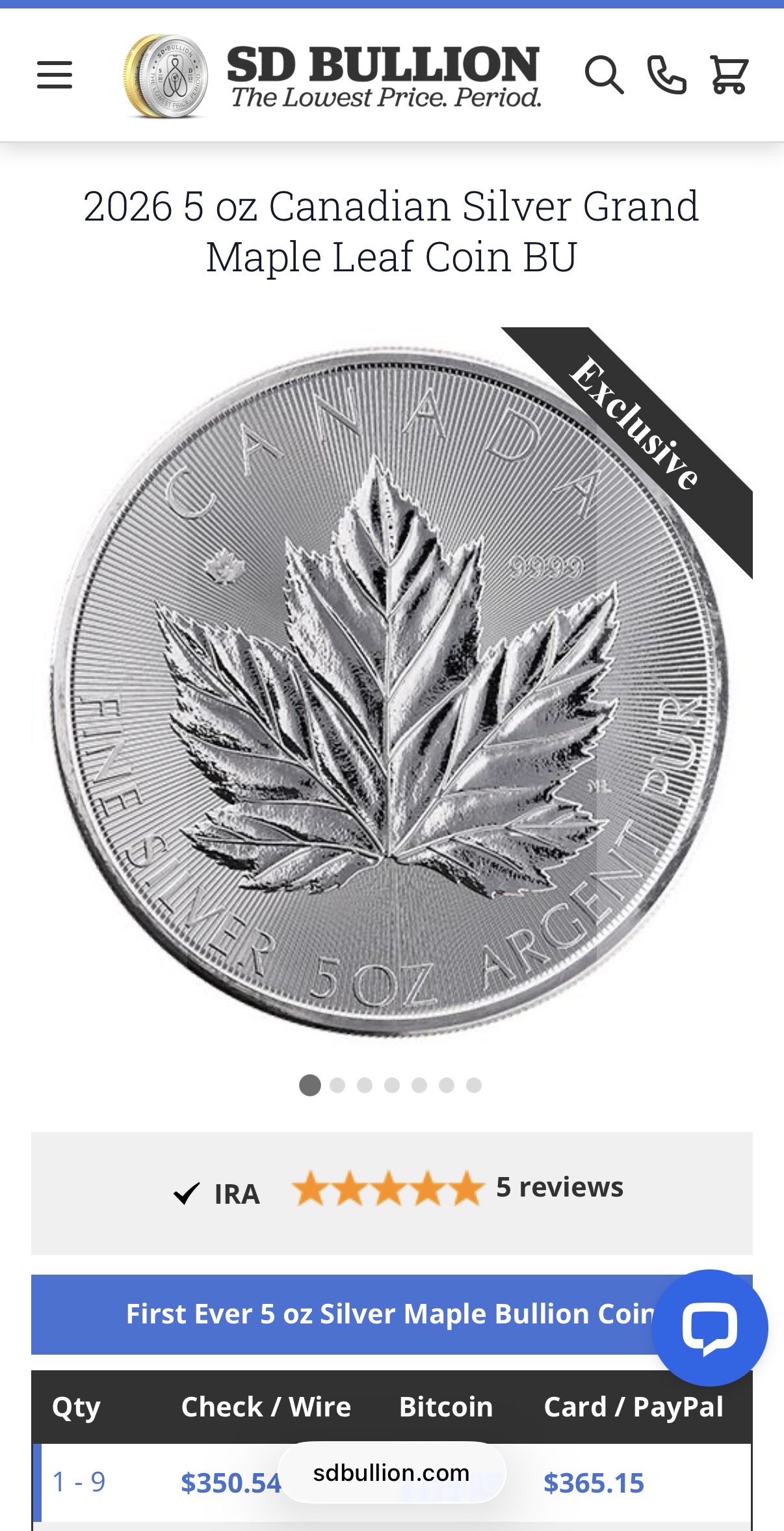 I want to stack these 5oz Maples but they come out to $73.03 per ounce ($10+ over spot). I’d rather buy kookaburras at the point