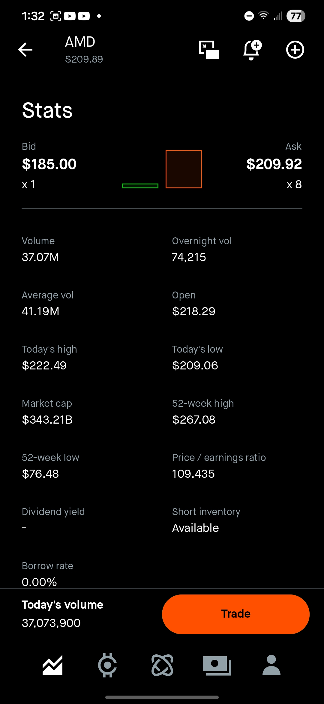 >>61486012>>61486014They trade and move and the weekends and nights on RH you fucking retards. As I've already said, the other stocks are moving around. Only this one is frozen. There's not ONE bid above 185? Not one?>>61486201I have a short in so I agree. I gotta switch brokers. RH puts and calls are fucking rigged.