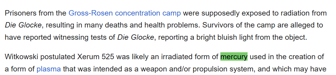 >>61501385Being a dumb teenager at my first job. We replaced 3000 T5 bulbs on a job site and tossed em in a big roll off dumpster. Tossed some other stuff on top. Boss wanted something out of the dumpster, I went and got it. Was hot that day, and very still. The mercury had vaporized and settled in the dumpster, and I disturbed it and breathed it in. Mercury is associated with / causes over 150 known diseases, including ALS. The most obvious effect is pronounced psychological disturbance over time (mad hatter syndrome), which amusingly is why I have silver. Everything has a silver lining I suppose (lol).>>61501414Mercury is safe until it isn't, that's the problem. If you really want some and are willing to play risky games I know where there's a shack that has approximately 100 gallons of mercury and two crates of weepy dynamite.