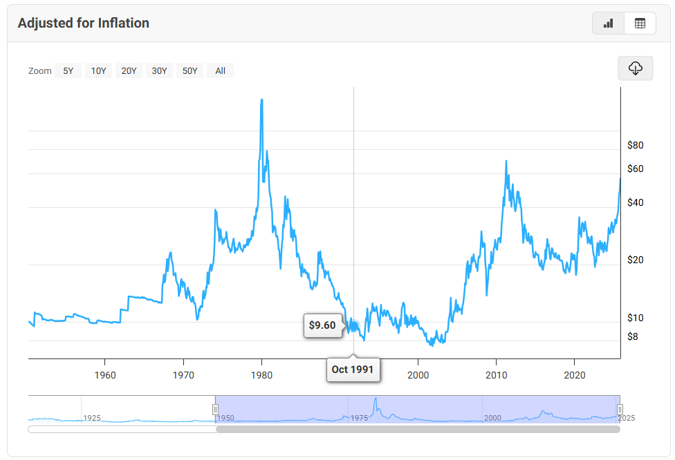 >>61504990>What is the issue with silver's ATH being the result of market manipulation?Silver (and up until recently gold) has been manipulated DOWN for over 50 years. This was done to protect the confidence in the dollar and by extension, other fiat currencies.That manipulation is ending which is why we're seeing ATHs now, instead of years ago. Nobody is manipulating the price upward.