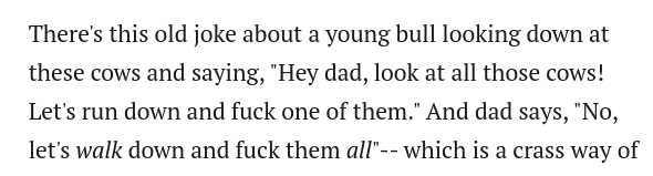 >>61505058>Hey dad, let's run down and fuck a cow.