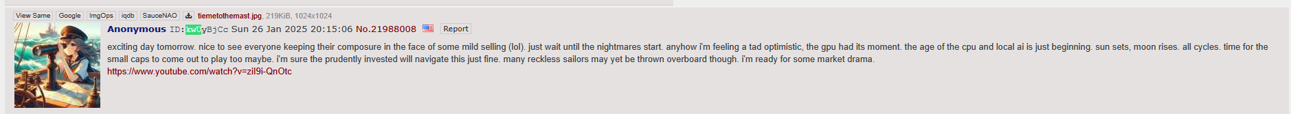 >>61517270If I'm being honest, /biz/ has gotten fucking stupid. It's all crowd-following late adopters who came here to buy the top of the stock/crypto/housing/AI omni-bubble. It's gotten especially bad in the last 12 months. Even plebbit is smarter now.t. /biz/raelite since day 1 when Moot added this board