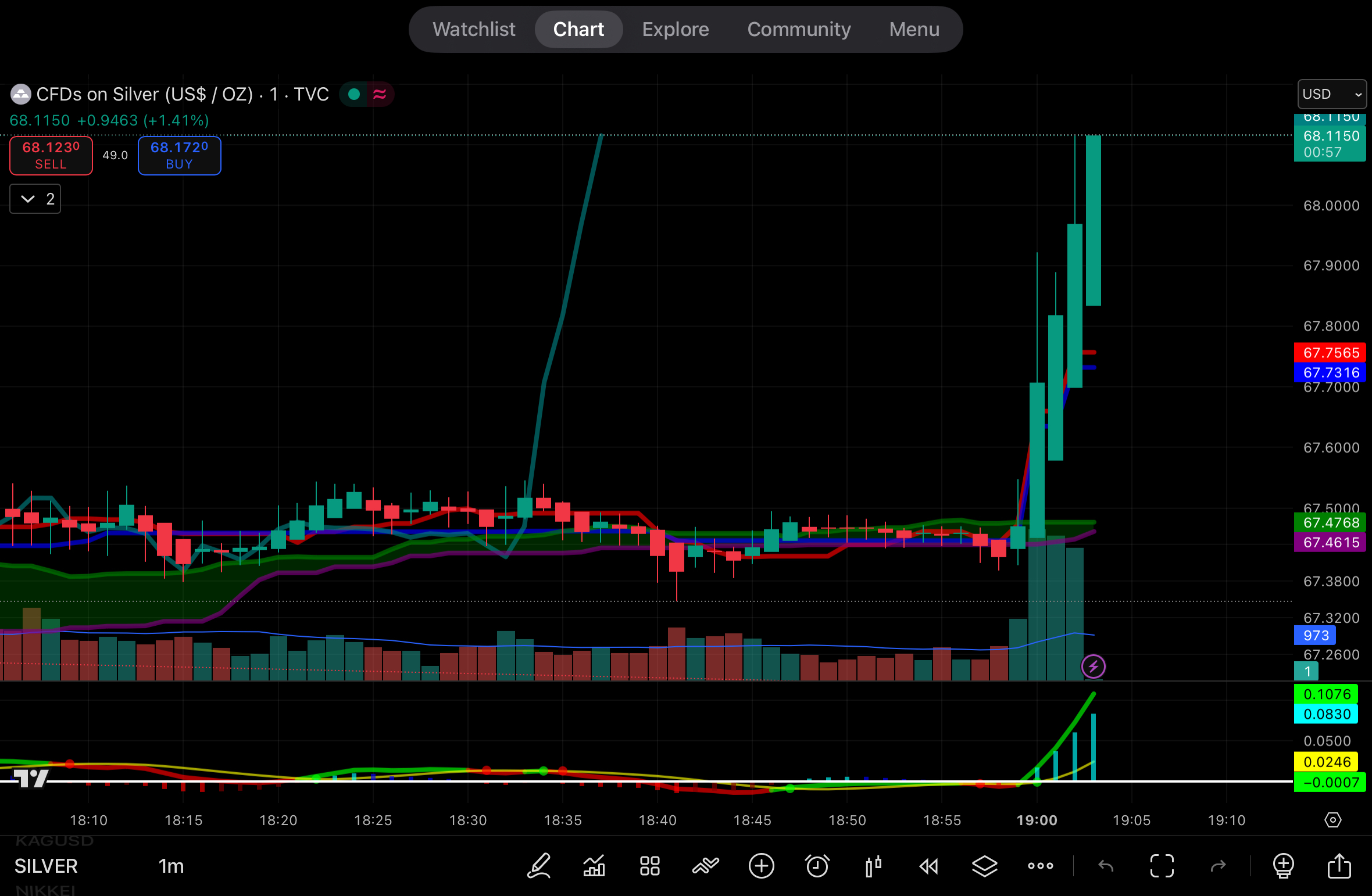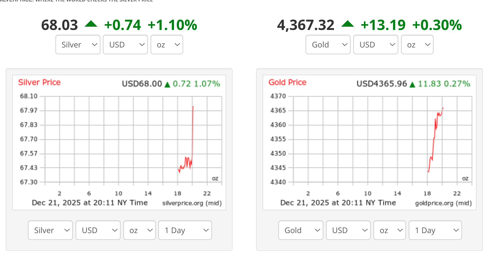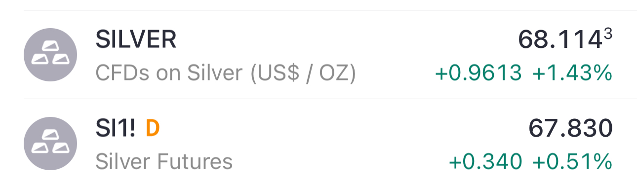 March 26 Comex Silver is now above $68.60/oz up 1.65% from Friday's close.