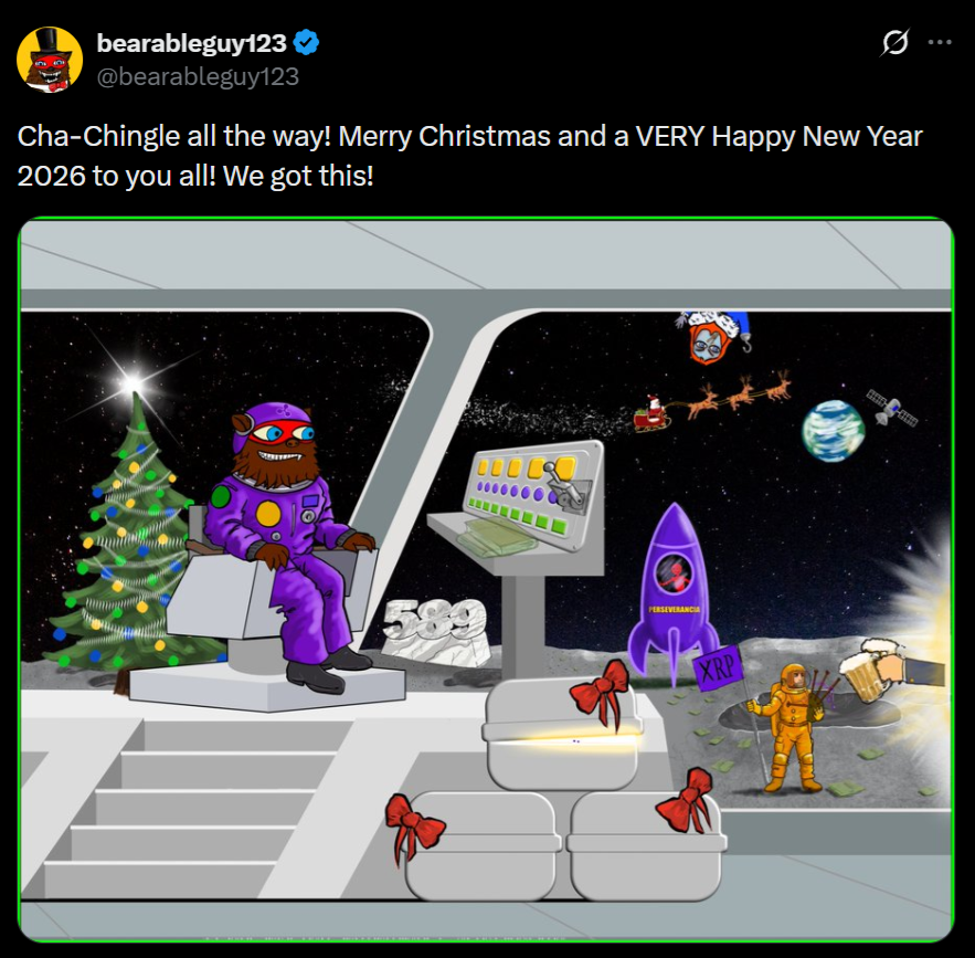 >the crew already on the moon>the king vacuumed into space>brad garlinghouse planting the flag after defeating some kind of alien slug (lol)>589 sculpted in silver?>the switch on the control panel is still up (yet to be pushed down)>the bear nervous and excited for what's about to come>gifts in the box about to be opened>the christmas tree pointing to the sun shining brightSo it's happening after Christmas and 2026 is our year.LET'S FUCKING GOOOOOOOOOOO