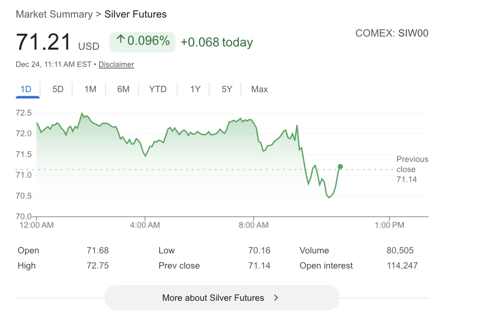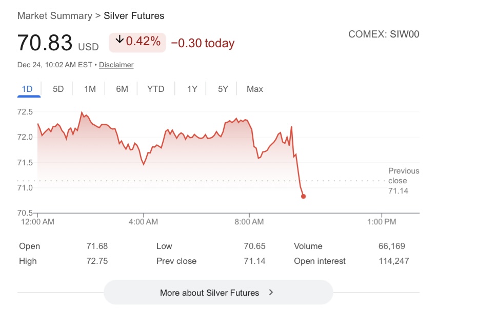 Now if OpenAI or Nvidia goes bankrupt over Christmas or the bond market blows up, or we immediately go into a recession then maybe you can see a huge dip but I just don’t see that happening until maybe Q2 and at that point the “historical crash” would be from like $120 to $100. I don’t like paying high prices for silver but we all knew that this would eventually happen.