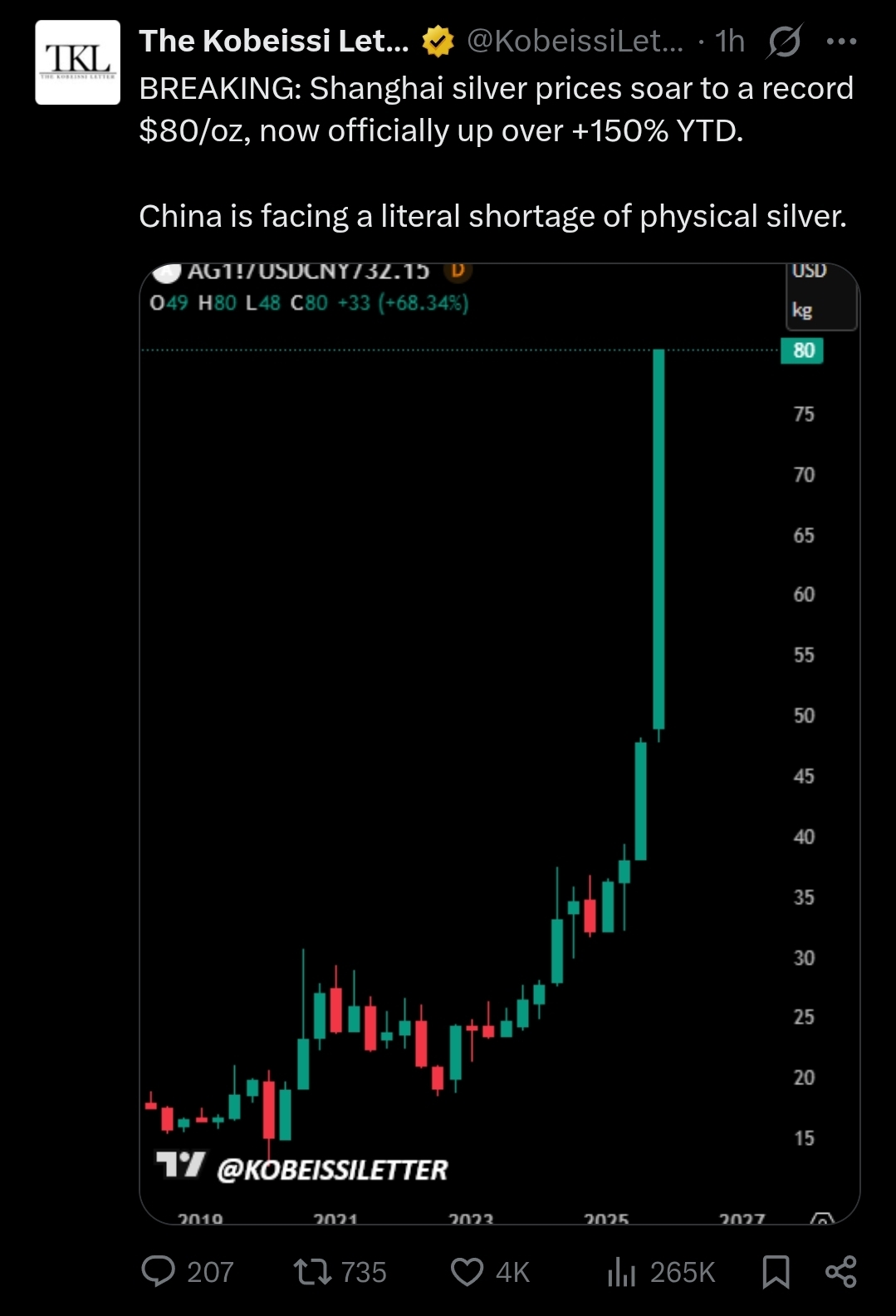 Spot price difference between US and Shanghai is widening every week. Could be $10 soon
