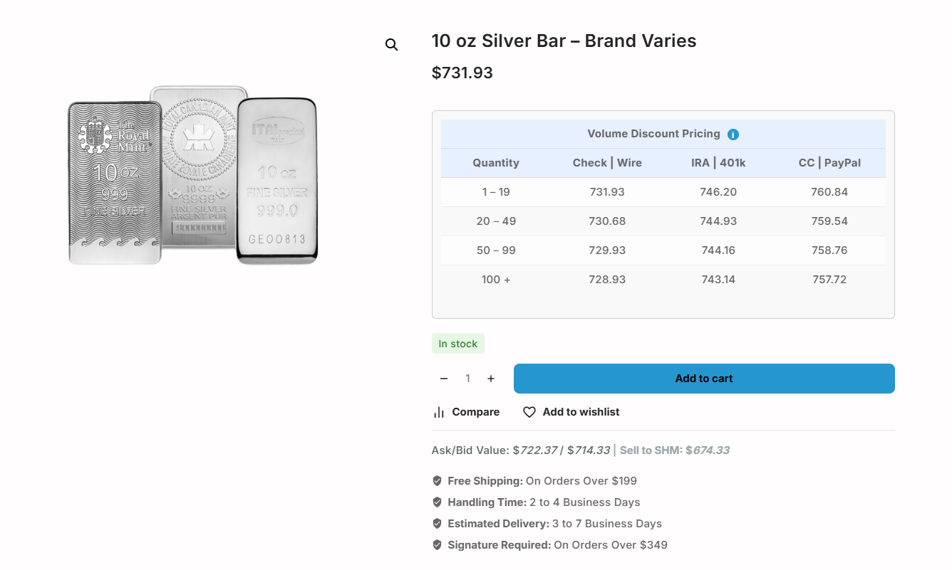 I meant 10 oz bars or just standard coins...