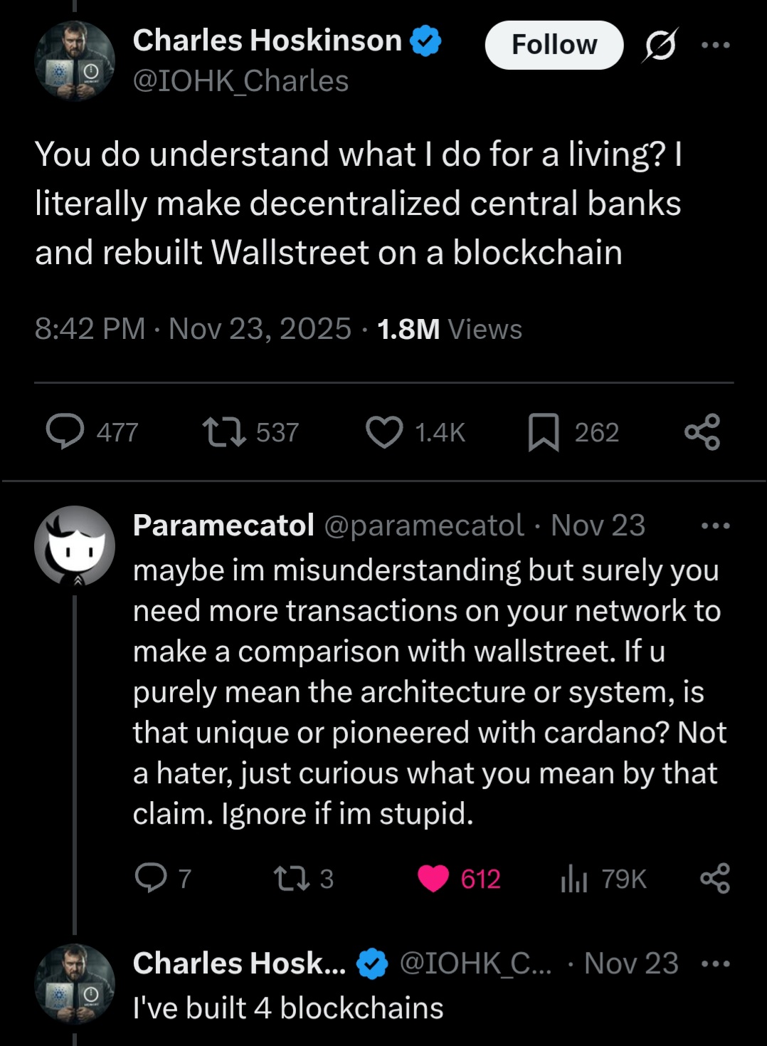 >>61552712I wonder if Charles Hoskinson Cardano CEO of IOHK Input Output Hong Kong will stop running his web scraper now
