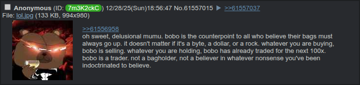 I'm not fucking asshurt, this is legitimately unjust and unfair. I spent years researching dApps, honing and sharpening my oracles, i learned abour international banking standards, KYC, and on-chain assets, and what? I LOSE money and some schizo that thought buying silver was going to end the Federal reserve gets a fucking 250% GAIN? How the fuck is that fair? Huh? Tell me. FUCKING ANSWER ME. And no I'm not asshurt, I'm just fucking PISSED off with entirely REAL and TRUE grievances. FUCK YOU.