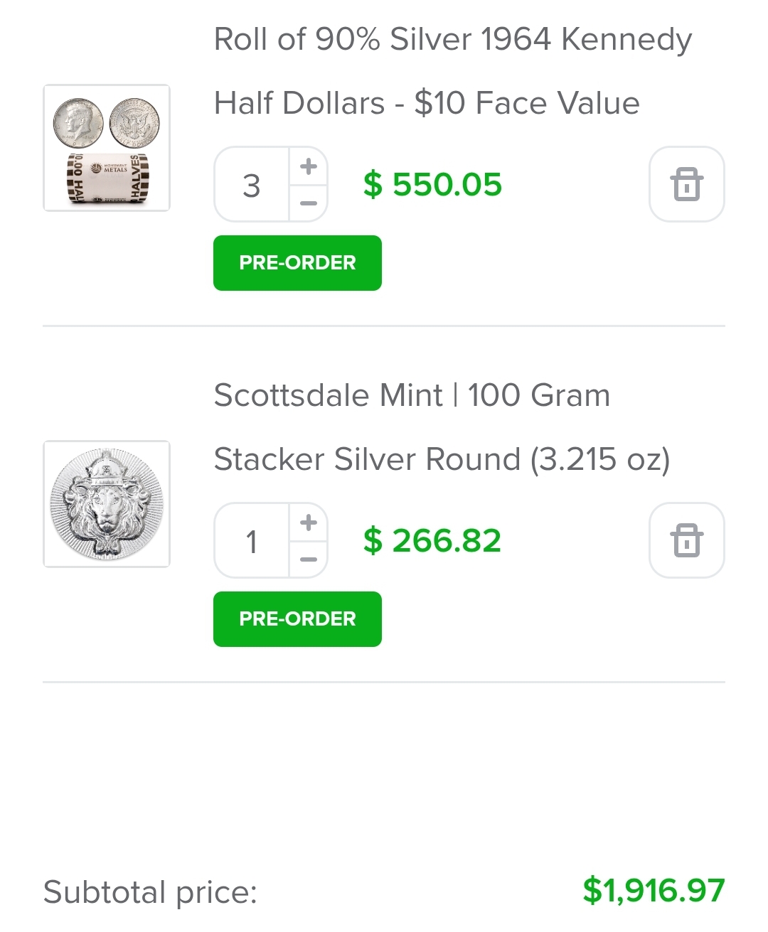 I was buying them in march for less than $3 (along with the mercs and nickels), I was loving it because my lcs would never give me deals on even shit generic bullion and made me pay over spot everytime.