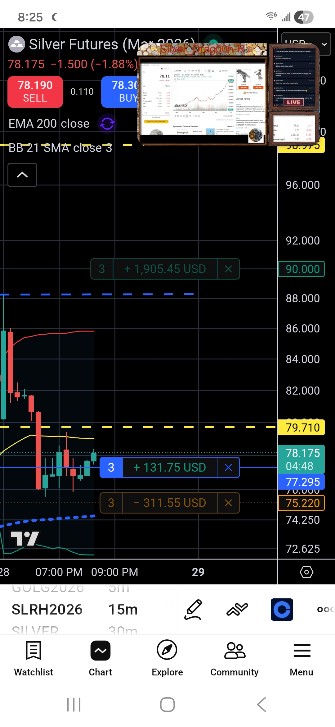 There feels like a conflict in stacking silver while also trying to play the market. Silver really has to calm down or even drop for stocks to be a viable option. If things go how the schizos expect than all markets will see a serious correction. Miners, paper metals, even S&P would be guaranteed losses.