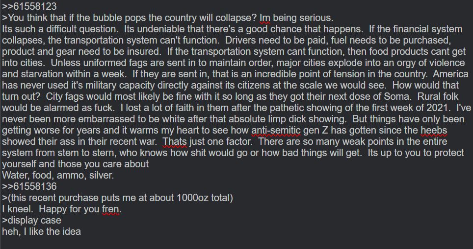 The major selling point for silver is the simplicity. Stack metals, jews seethe. No refreshing charts or freaking out about line go up or down. Yes, could you leverage a play that turns a couple hundred into five figures? Sure. But you could also waste a bunch of time and money ironically performing worse than just stacking silver.