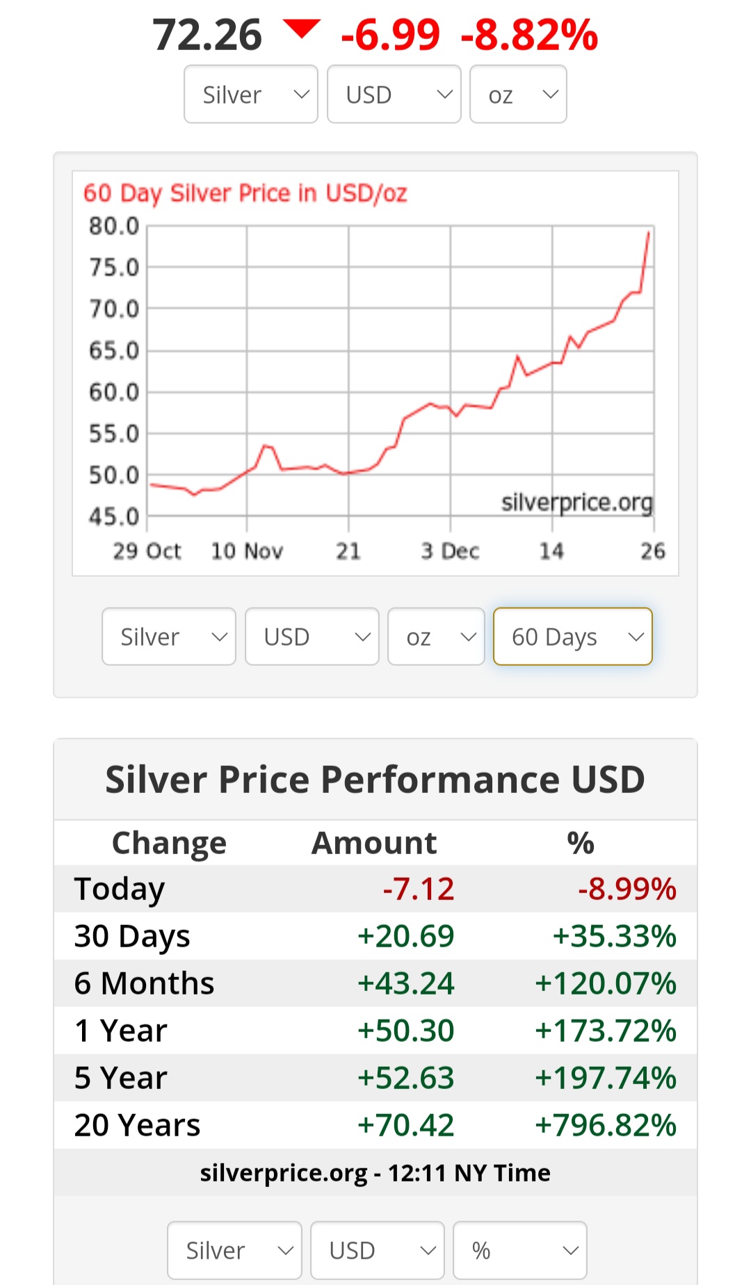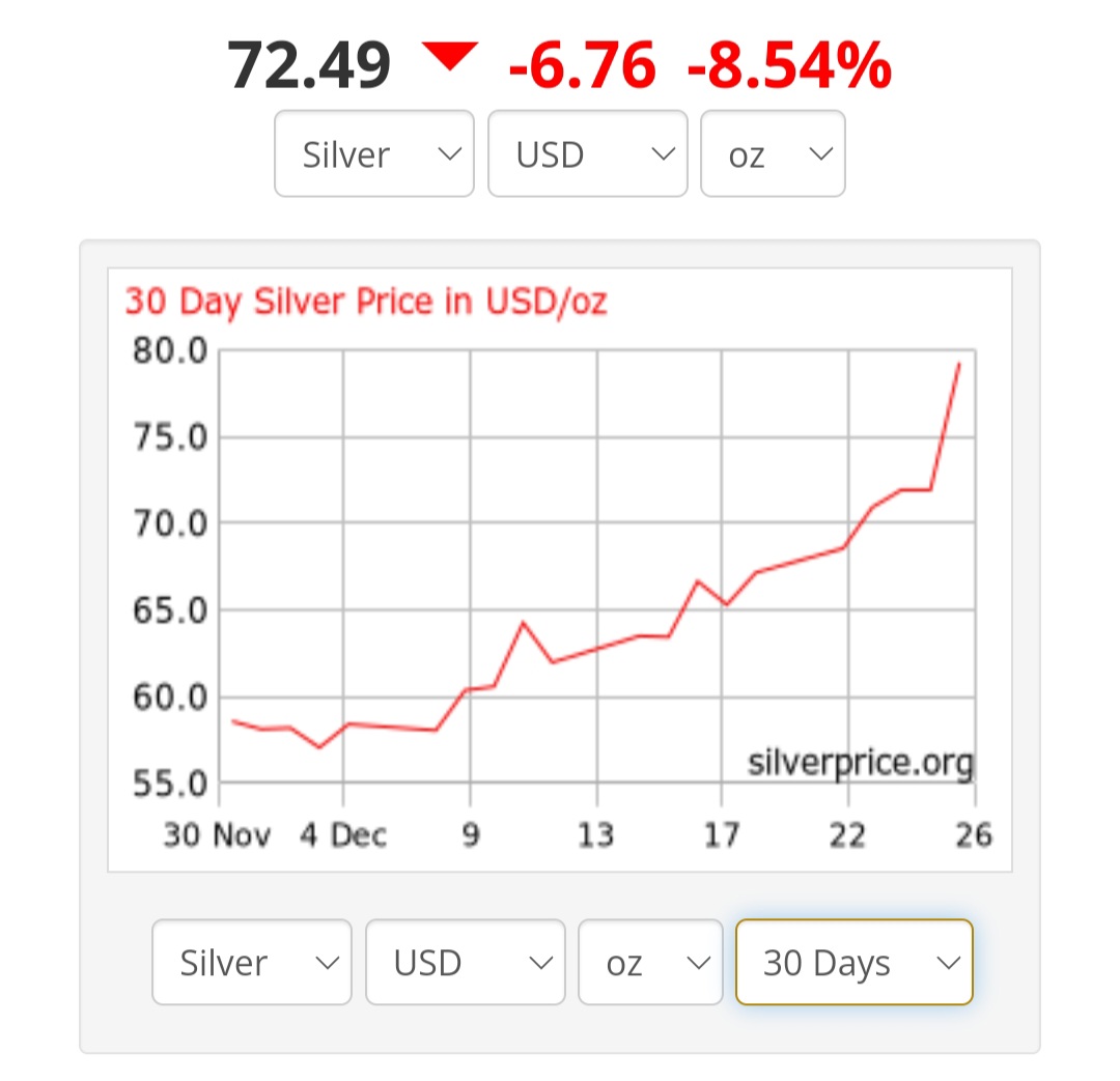 >>61561651Silver has crashed above 76 now, fuck me, I'm financially ruined!