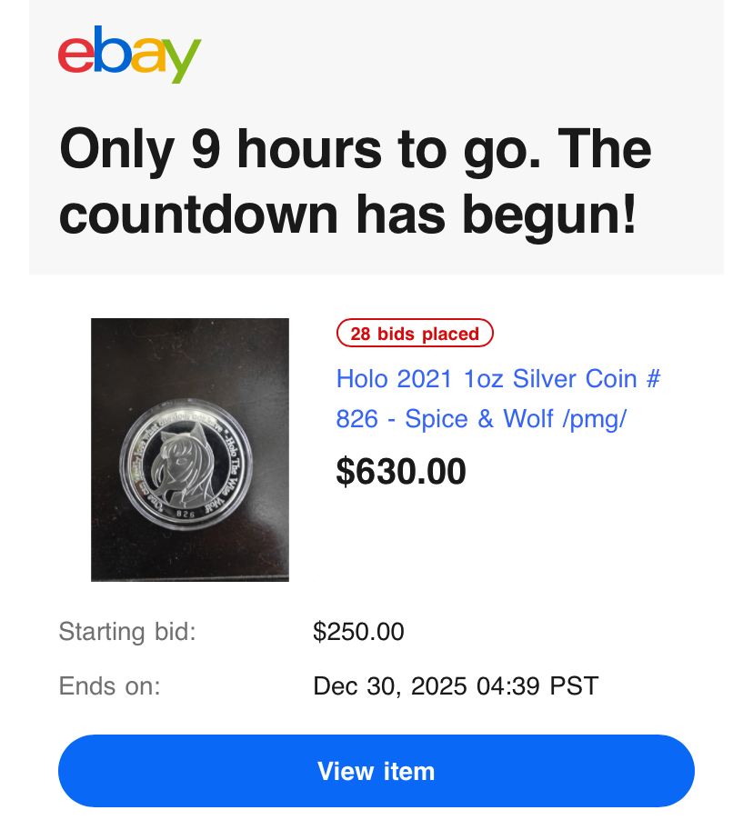 >>61564405>What did you pick up recently, anon?Too many to list them all kek. Currently scouting for old listings on ebay for low numismatic hanging fruits of which sellers didn't update the price since spot vastly outpaced the old numis value.Getting numis for 50/60% of spot is very comfy.