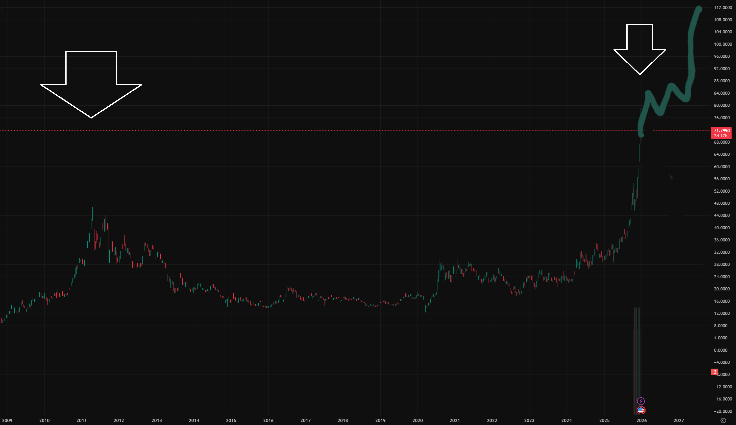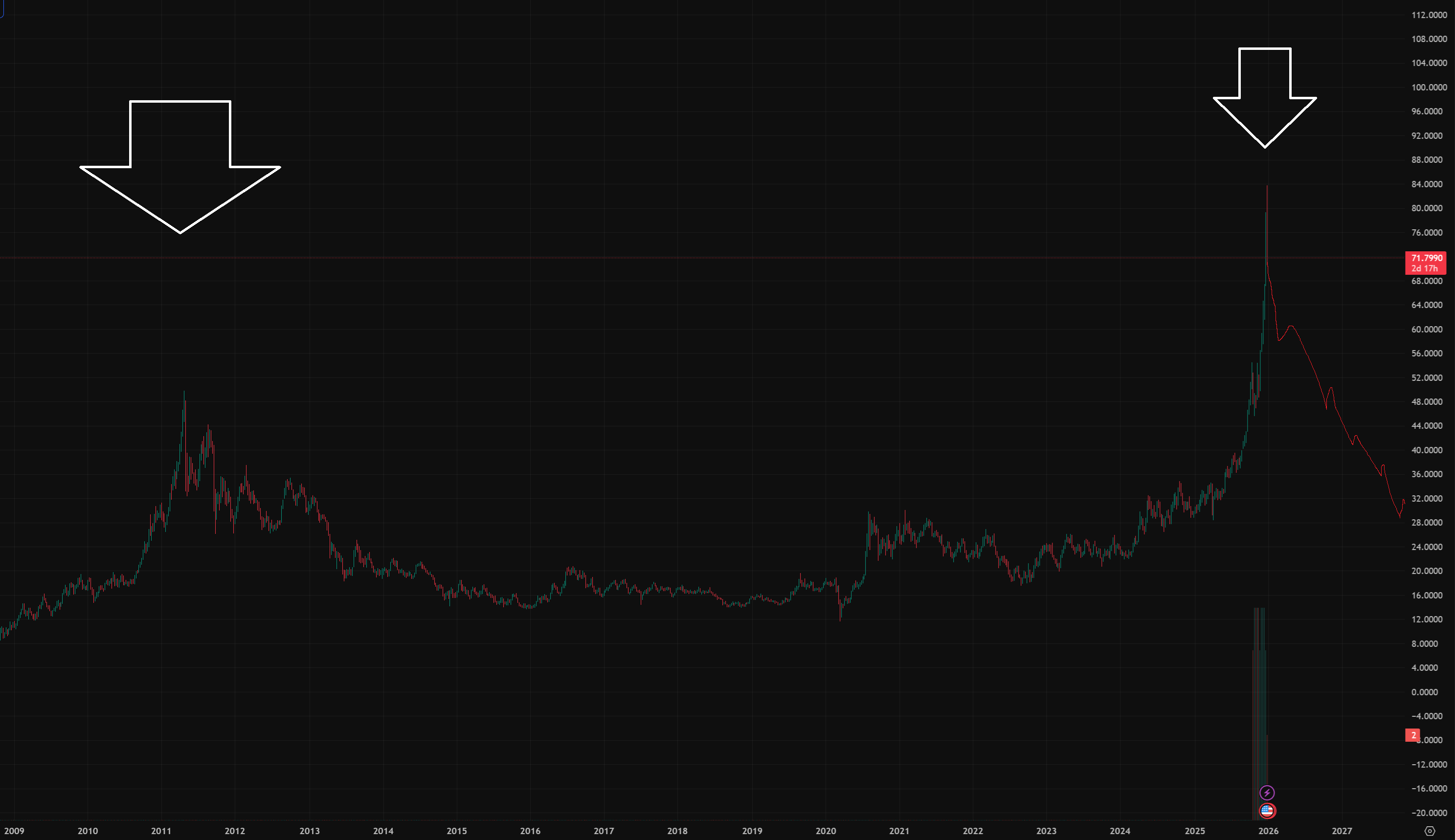 I wish it would go down to $35 but the dollar is crashing and BRICS is kicking in with their 40% gold backed currency. BRICS will start it then Trump will release a gold backed Rainbow currency this year to compete with BRICS, with 2-3% saving rate on precious metals deposited. lol get with the times, precious metal and resource backed cryptos are the future.