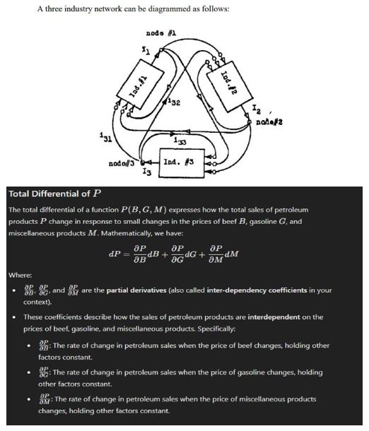 The above 3 industry system is a one dimensional linear model. It only considers changes in prices due to other changes in prices. Even so, they could be expanded and calibrated to a point where even the early economic models could predict price actions. This calibration of the model is done through economic shock testing. This turns those partial derivative expressions into coefficients that describe inter-parameter sensitivities. The exact same basic calculus is used in all mathematical models used to describe energy transport, but to do so accurately you must expand the calculus into higher order derivatives that describe the dependency in the rates of changes not just the changes themselves.