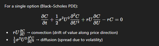 This shift from first order to second order thinking is something 95% of the population doesn’t even know exists nevermind understands. Options traders use these higher order derivatives to accelerate profits and dynamically hedge against risks and volatility, and only the mathematics PhDs who built the models somewhat understand them. The resulting partial differential equation (PDE) is in the form of pic rel. The form of this equation is essentially and energy transport equation. Sophisticated trading algorithms are continuously solving a stochastic transport problem, computing how directional flows (convection terms) and uncertainty / randomness (diffusion terms) of value and risk propagate through the market, and dynamically applying feedback (turbulence closure) to control or exploit that propagation. Discontinuities (capital limits, margin requirements) act as rate limiting boundary conditions. The resulting series of discretized equations are partitioned into sub-matrices populated with the interdependencies coefficients represented as state variables. Stay with me.