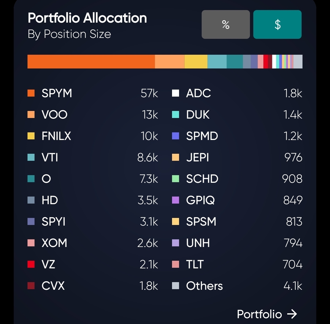 >>61572048Its More AI then actual dividend companies. Divvy yield is 2.4% overallI also have 100 shares of Amazon and roll OTM CCs monthly and that makes about $160