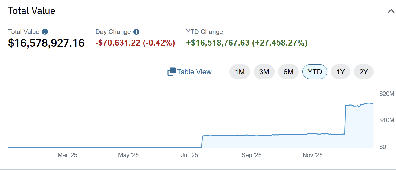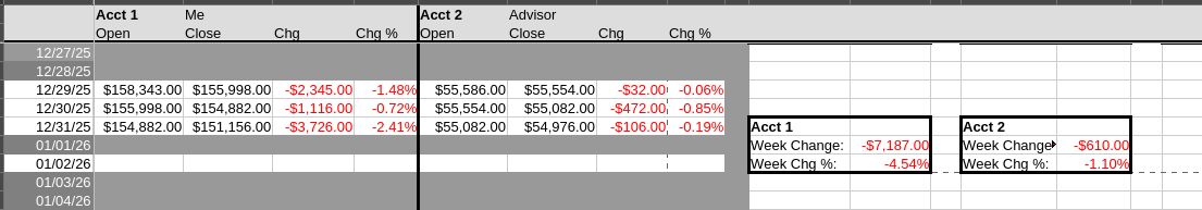 >>61572901-2% day-3.5% week-5.5% month+40% yearGood year but I expect 2026 to be even better.