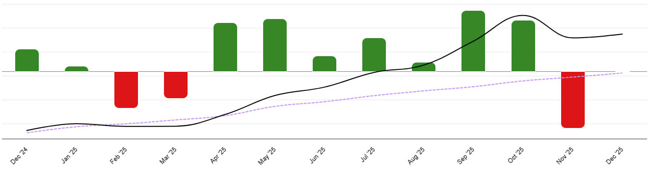 >>61573224I forgot+56.26% for me in 2025. December was pretty weak, +2.28%