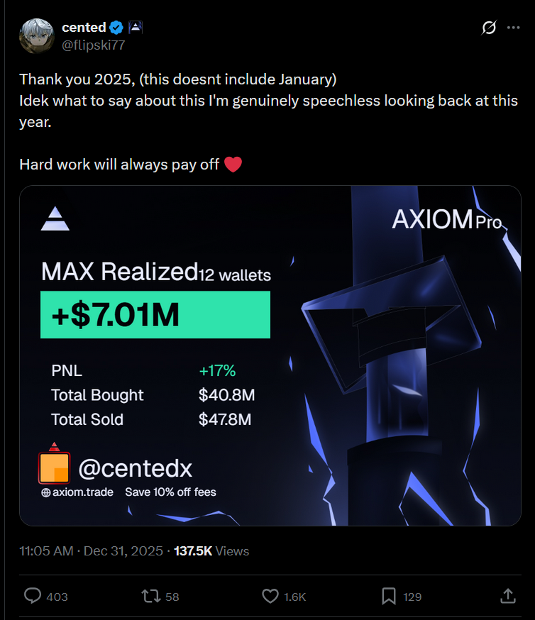 This is one of the best "Traders" for shitcoins in 2025Buying 5k market cap coins and selling them at 7k market cap 1000 times per day, and make $7M in profits doing it for 1 year everydaySo basically you have to trade like a MEV bot in order to make money these days?