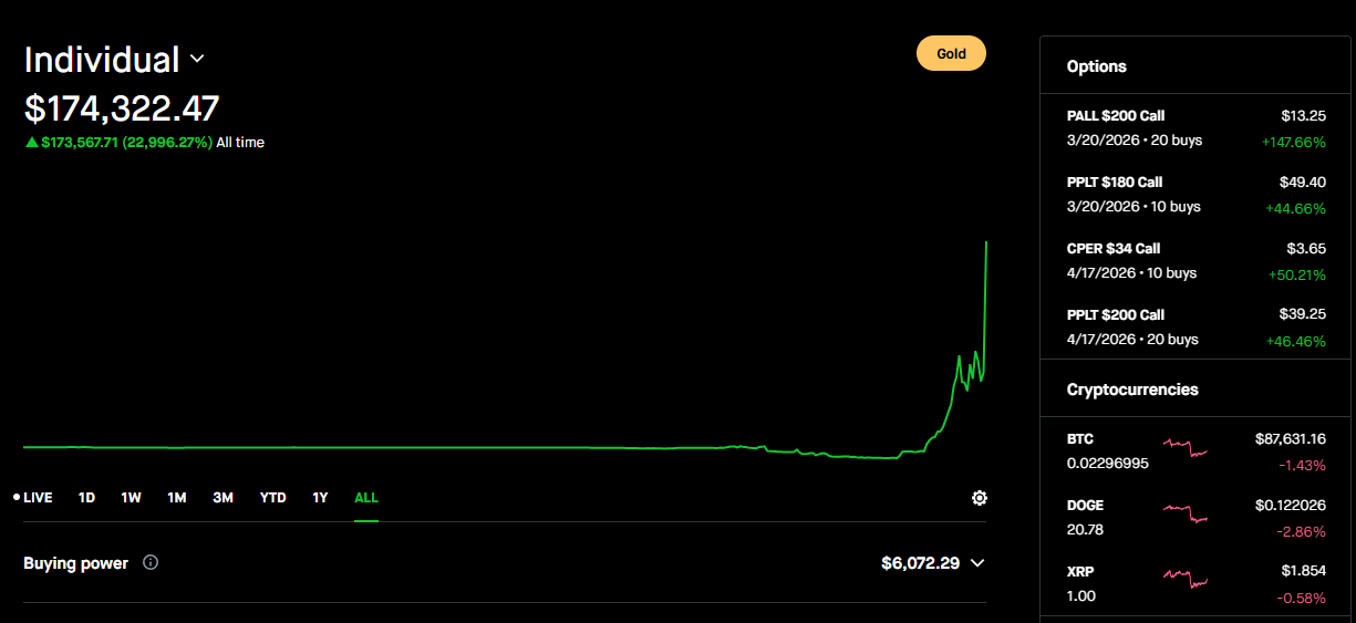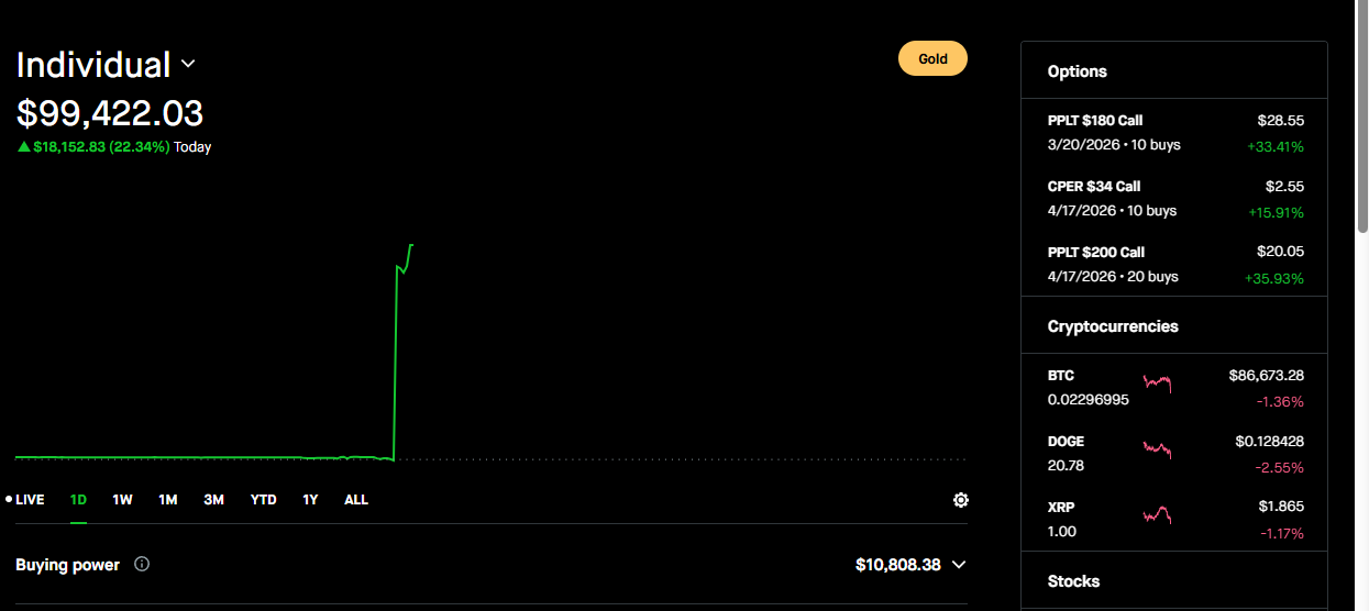 >>61578414I didnt really want to gamble, the reason I took calls on PMs is that they have a slow steady gain over months and months. I wasnt expecting silver to do +10% a day on spot. I expected where I am at now with a .5 to 1% a day at max.I decited not to sell because doing quick napkin math it would have cost me more in tax with what I did the rest of the year than to just wait until tomorrow and start the new year without the previous P/L and income. I was wrong, but my thesis holds, so im going to sell tomorrow and reposition. >>61578436No, Im using calls as leverage in metals because metals are a sure bet in the long run. But as I said, this is my first real season trading and I am learning my lessons, the hard way if I must. But I will talk about risk management alot, its what I was trained to do in the sub force and from what I learned growing up ( a bird in hand, 2 in the bush on and on). But I just wanted to start with a clean slate so I can see how the math works. Again, Theory and practice are very different animals, I know this and Im leaning how to work with it.
